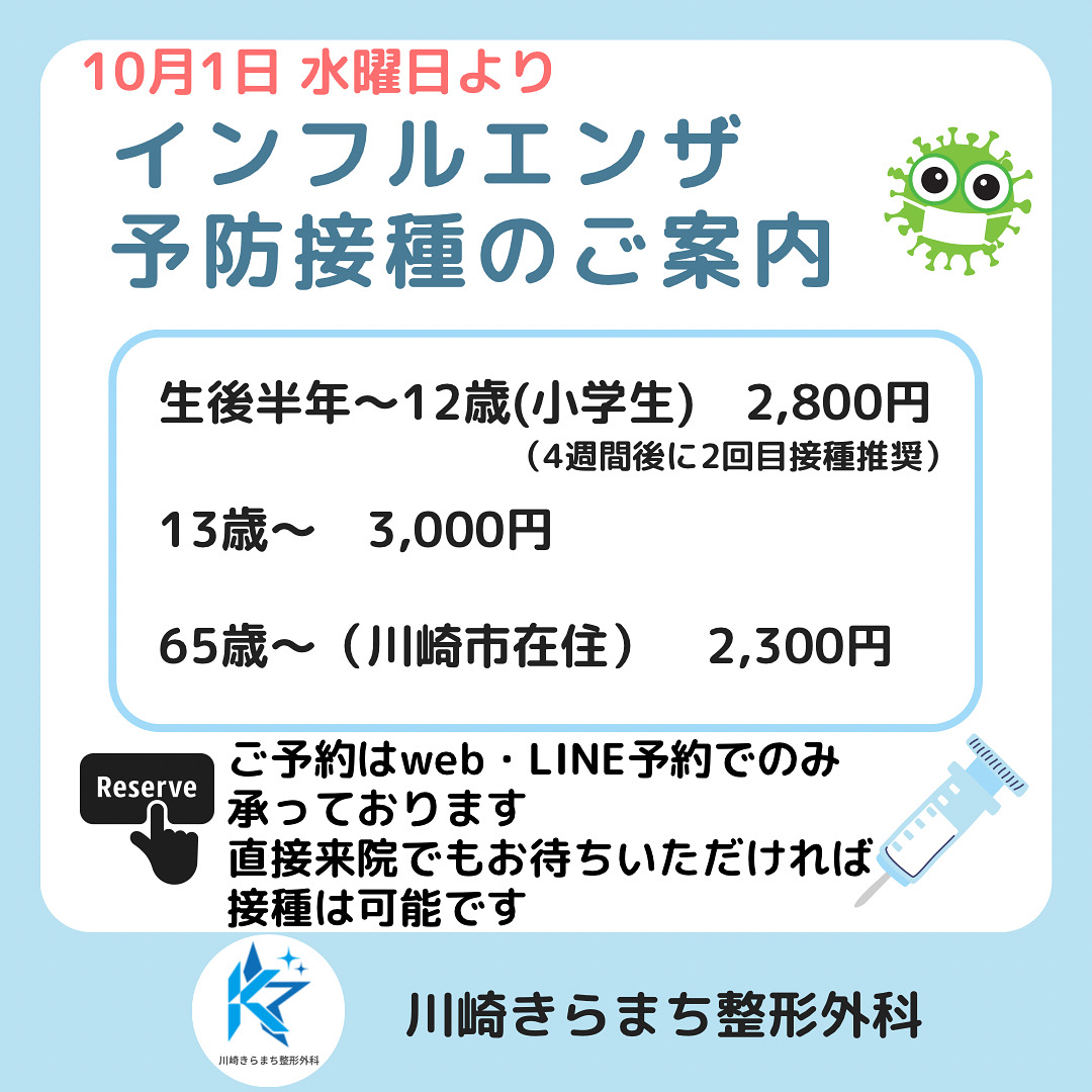 10月1日(水)よりインフルエンザ予防接種を開始いたします。