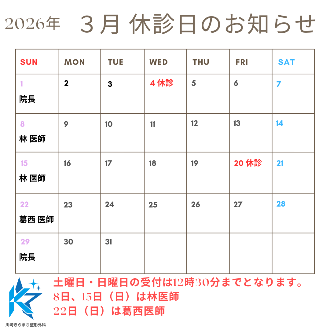 3月10日(火)の診療最終受付時間は18時までとさせていただきます。